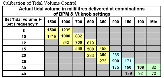 For example, the user manual of a commonly used pneumatic transport ventilator clearly demonstrates the variability in tidal volume delivery depending on the ventilation rate. With a set tidal volume of 500 mL and a ventilation rate of 12 breaths per minute, the actual tidal volume delivered is 619 mL. Such a discrepancy highlights the inability of these devices to ensure accurate ventilation. Moreover, because most of these lower-end ventilators do not provide any real-time feedback on ventilation quality, healthcare providers cannot identify or correct these errors during use.